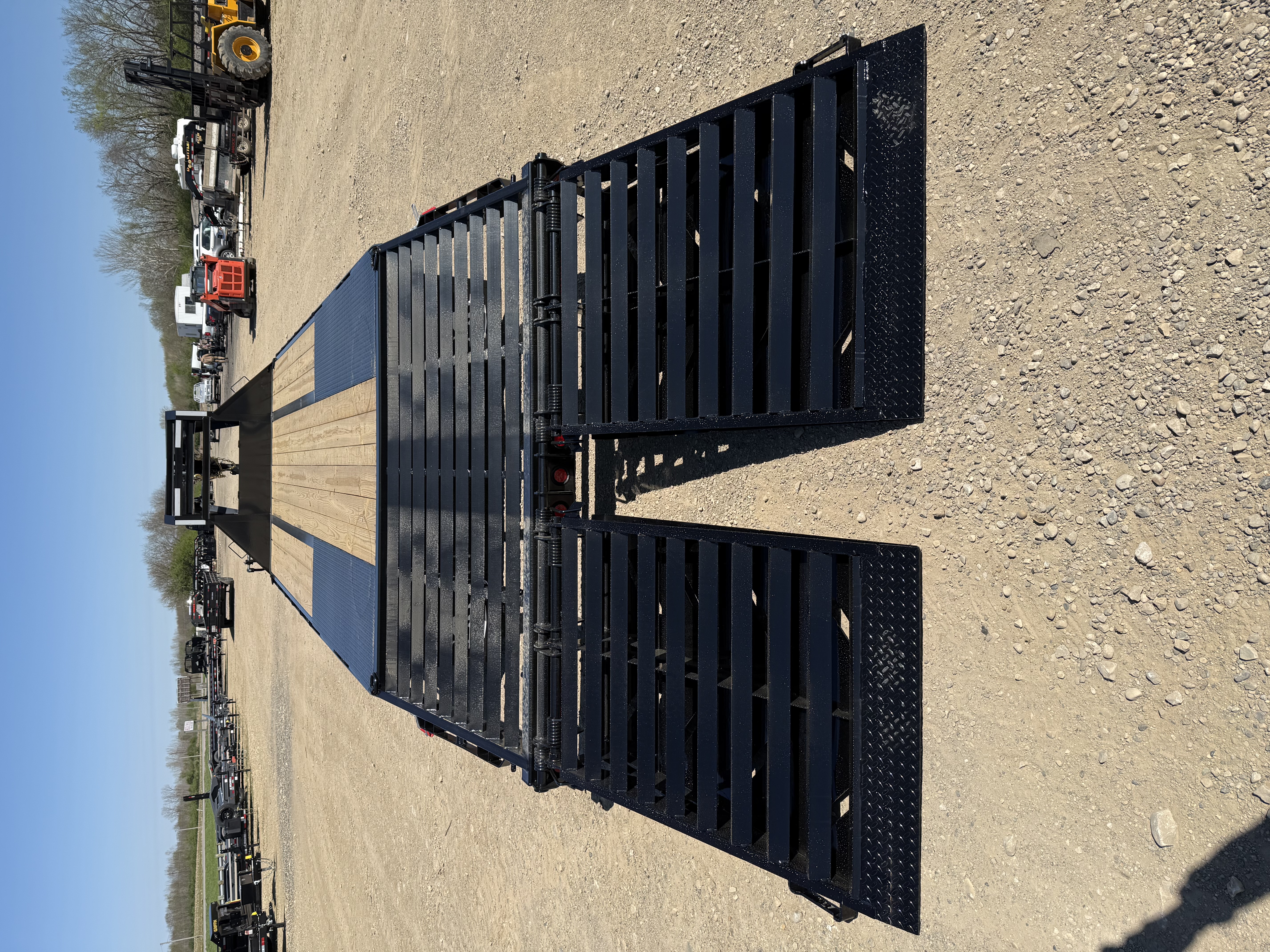 All wiring is in a sealed harness and runs inside the 2" x 8" upper deck frame. Fresh powder coat gives each trailer a rugged finish with a showroom shine. USA made, lifetime recessed LEDs are provided by TecNic lighting. Each Iron Bull Trailer also comes equipped with stake pockets, pipe spools and rub rails as well as an adjustable coupler. All Iron Bulls are sitting on electric brake axles and roll down the road on radial tires. Select from our multiple tail options including our Rampage Ramps or a hydraulic dove tail and corral your Iron Bull today.