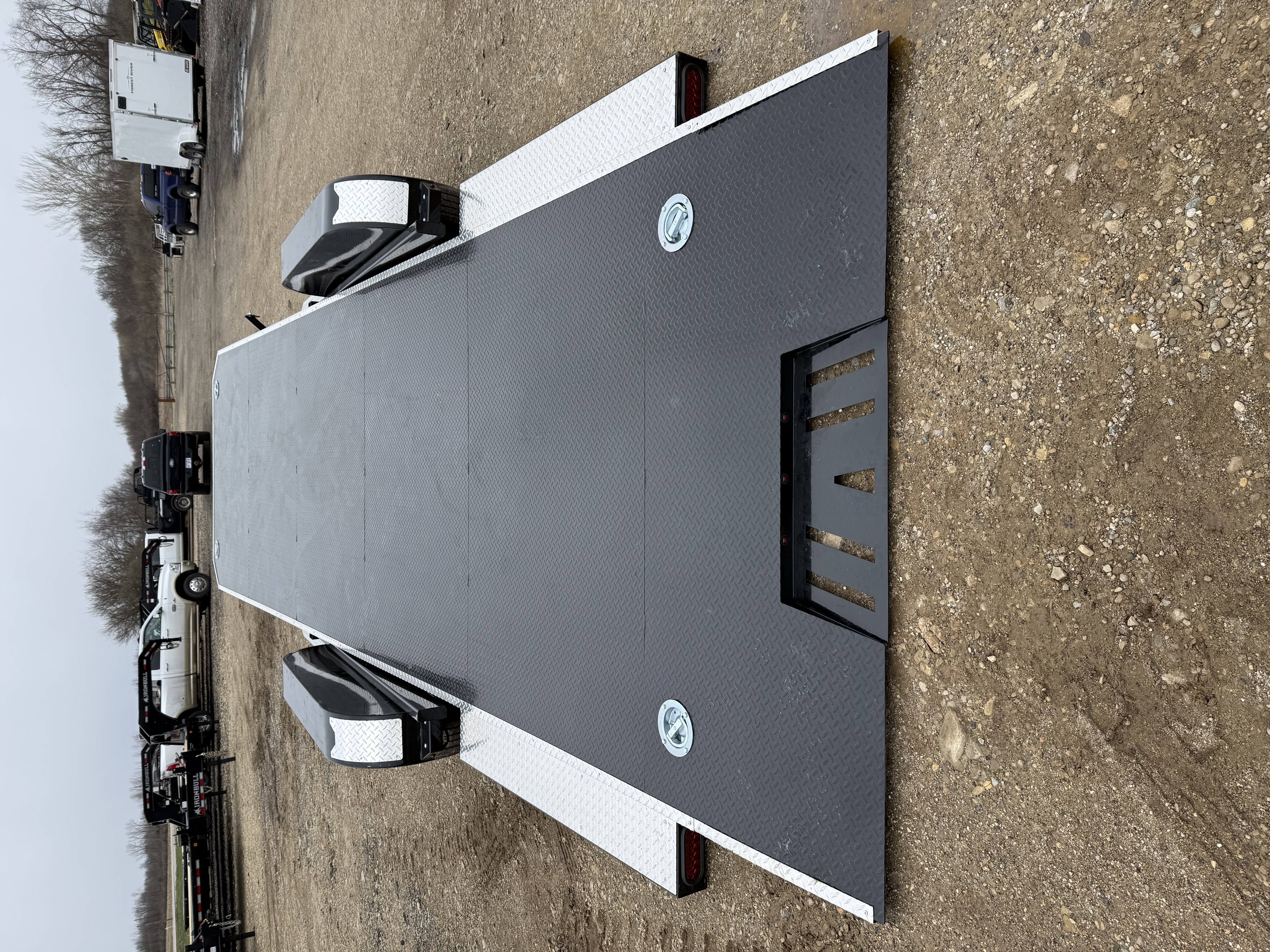 The Ironbull TRB stands in a class of its own in the Ironbull lineup, blending lightweight agility with the industrial-strength DNA you expect. Engineered for maximum payload capacity without sacrificing durability, the TRB features a robust 2x5 tube tongue and frame and a full deck gravity tilt system that streamlines your operation by eliminating the need for heavy hydraulic pumps. The high-traction steel diamond plate floor—complemented by premium trim around the upper deck and 14GA cover walkways—provides a professional finish and a safe workspace in any environment. Underneath, two 3,500 lb axles with electric brakes and 8-ply radial tires provide a smooth, stable ride, while the adjustable 2-5/16" coupler ensures your rig stays level on the road. Complete with 6K swivel 360 D-rings and a comprehensive LED lighting package, the Ironbull TRB is the ultimate lightweight powerhouse for those who refuse to compromise on performance.