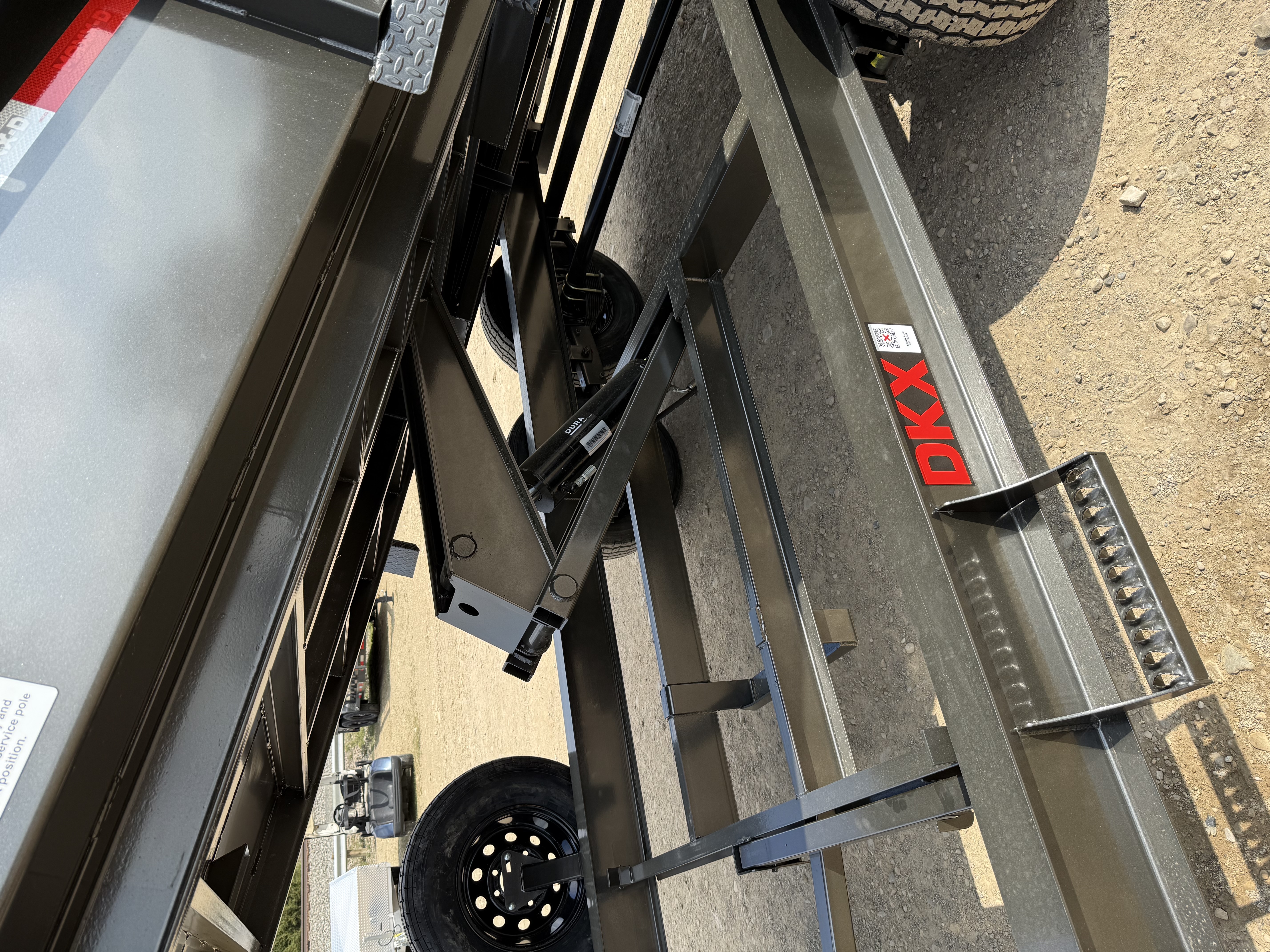 Built with an 8” I-beam frame for strength and a 5” scissor hoist for powerful dumping, the DKX is ready for heavy work. It features a heavy-duty hydraulic system with a KTI pump and Interstate battery inside a protected toolbox. With 18” steel sides, a 6” board cap, a 14’ bed length, and a GVWR of 14,000 lbs., this trailer is built to last.
